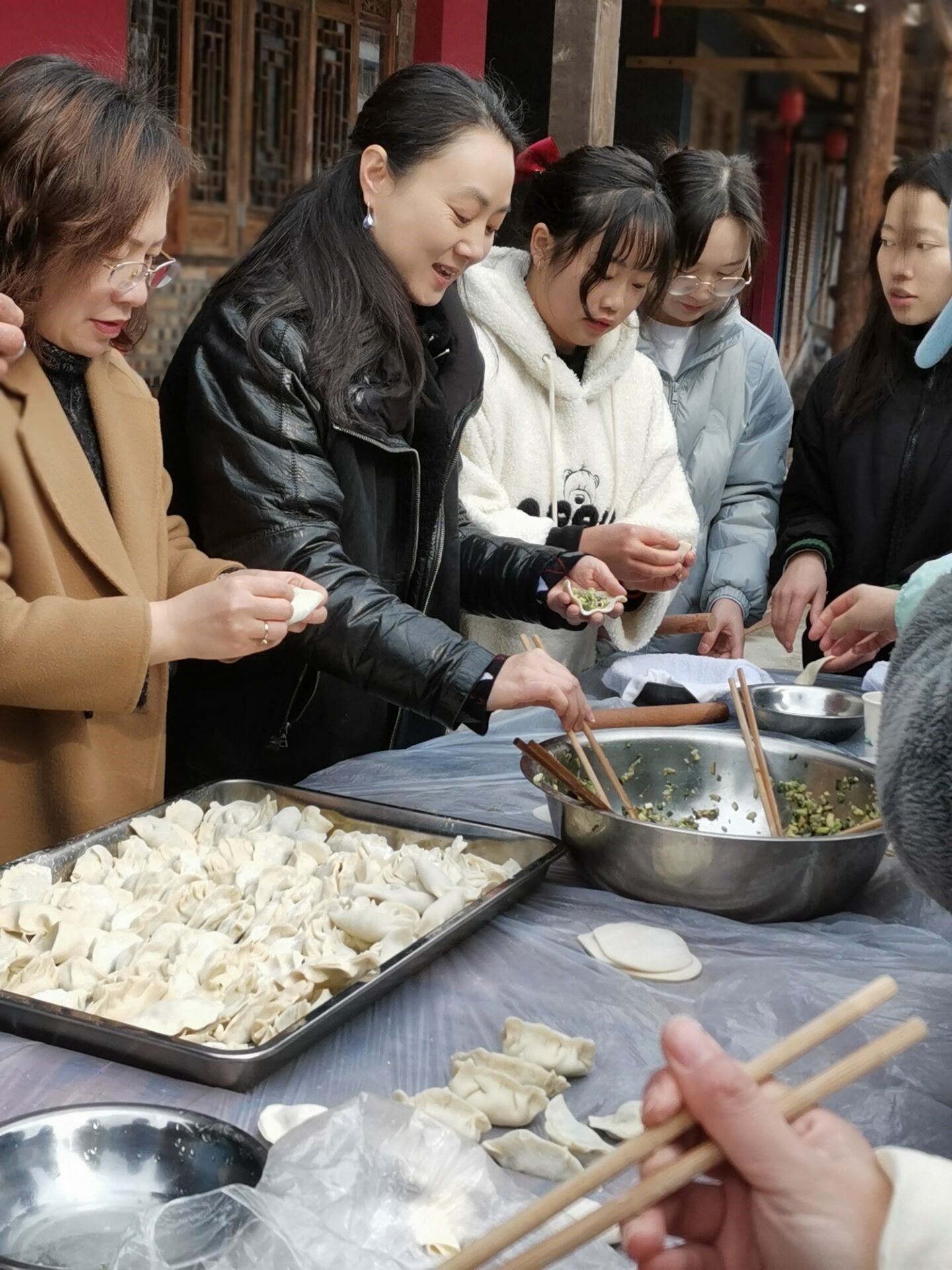 农历虎年春节将至,2022年1月30日上午,学院党委书记钟敏、执行院长郑景丽、副院长喻科、党委副书记李青松、各年级辅导员同留校的30余名学生在虎溪街道建新村农家乐开展“包饺子迎新年”活动。