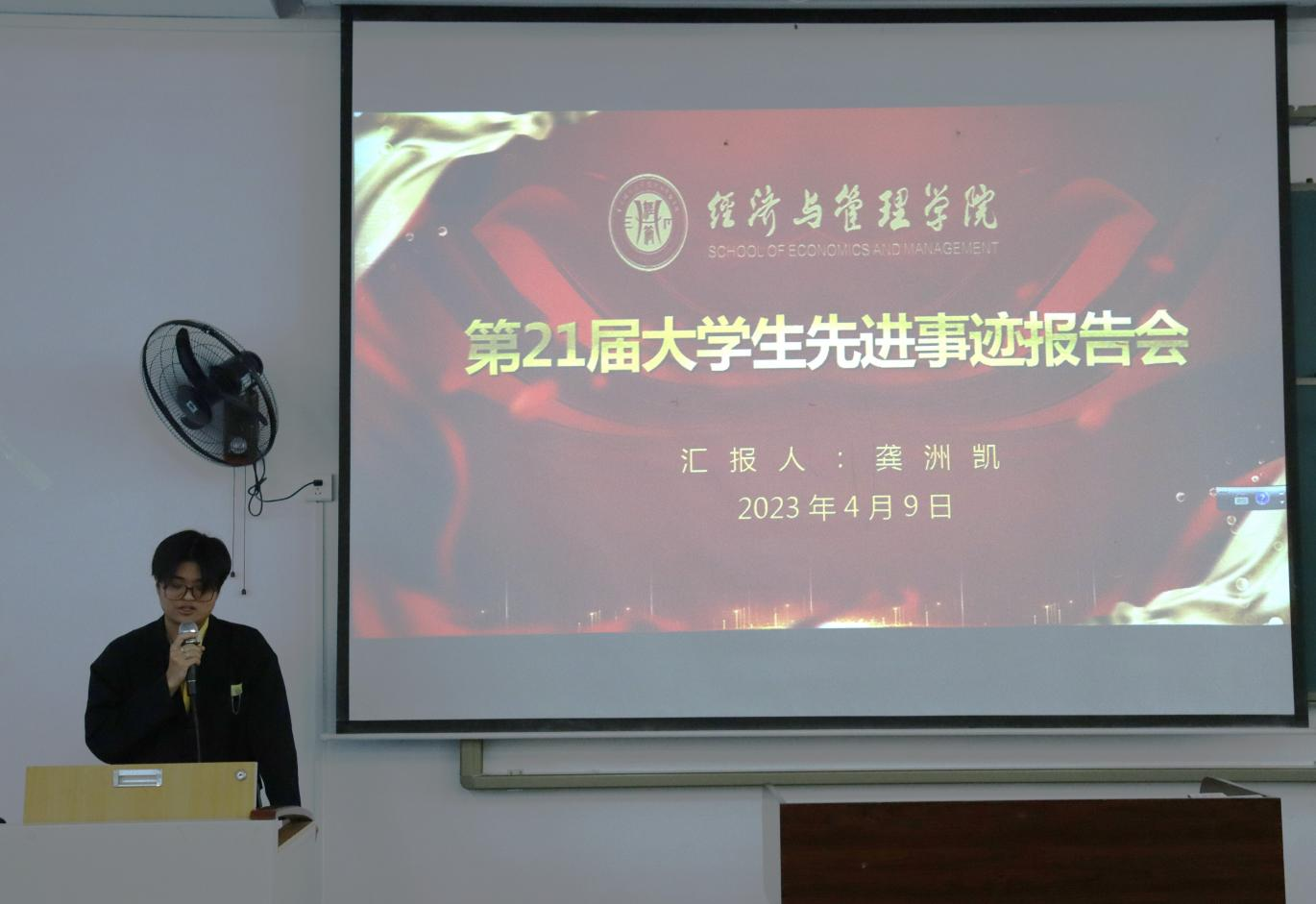 于2023年4月在特教楼2507组织开展了第21届先进报告团宣讲活动。学生处思想政治教育科科长陈禹辛出席本次活动,退役国家级反恐特战队队员韩坤霖、经管院文体部负责人龚洲凯进行宣讲。