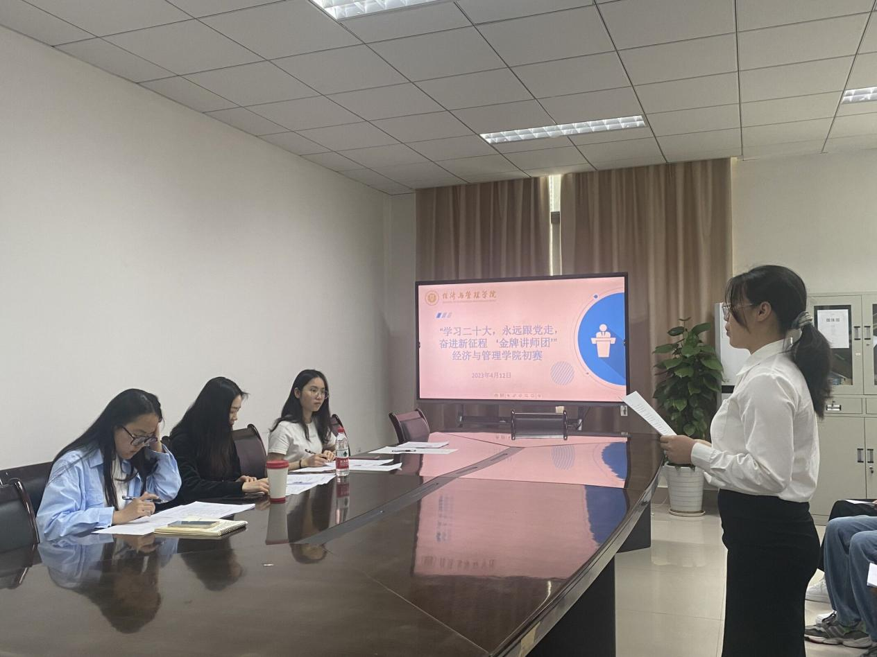 于4月12日中午13点在求是楼316举办“金牌讲师团”宣讲初赛,辅导员唐艺珊老师、学习部主要负责人袁玲、负责人蔡福敏、徐雨佳担任评委。