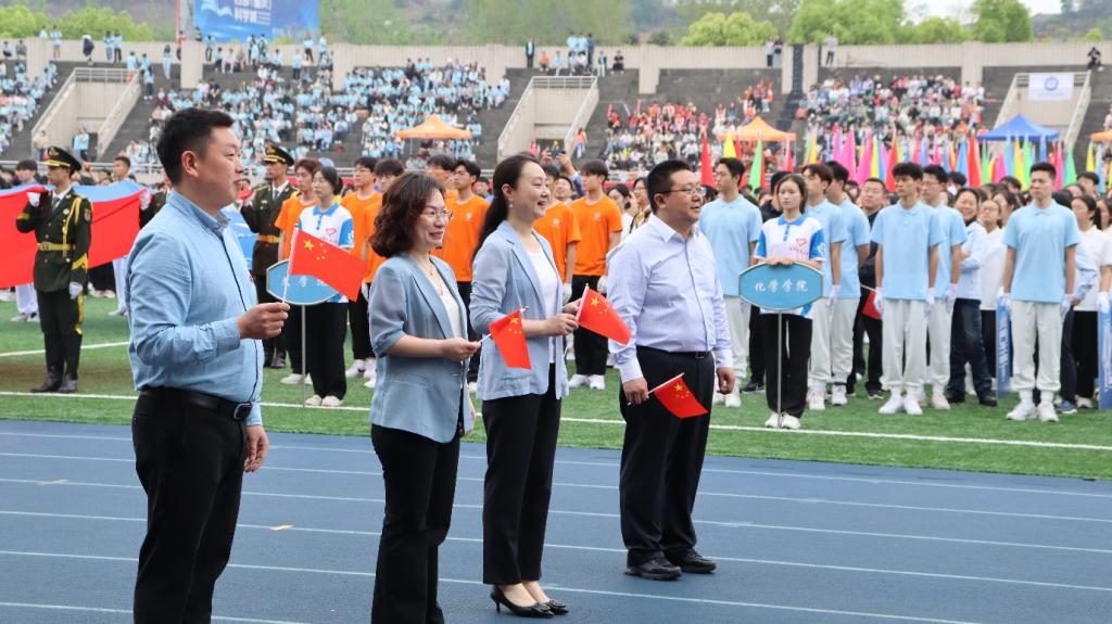 在庄严肃穆的升国旗仪式后,校党委书记曾礼致辞,他对运动员、裁判员、教练员进行了亲切的慰问,对工作人员表达了衷心的感谢,并表示春季运动会融合着重师艰苦卓绝的奋斗精神、彰显着重师人努力奋发的拼搏精神、包含着重新逐梦的重师情节,为建设体育强国和健康中国贡献了重师力量。随后,主持人宣布运动会相关事宜,裁判员、运动员分别进行宣誓,由曾礼书记宣布本次运动会正式开幕。