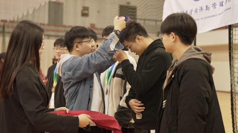 随着裁判员一声令下,22级工商管理类3、4班和20级工商管理的球员们斗志昂扬,火力全开。双方球员密切配合,以敏捷的跑位,漂亮的传球,精准的投篮赢得了场外呐喊喝彩不断。最终20级工商管理以81:61的比分赢得冠军。赛后,丁延昭老师和李威老师为球员们颁奖,全体人员合影留念,至此,本次性吧