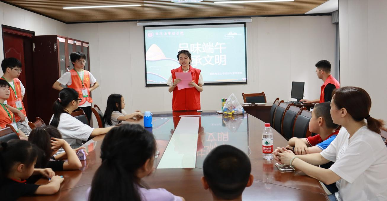 为弘扬端午节所蕴含的深刻文化背景和寓意,进一步宣传中华优秀传统文化,2023年6月11日上午,性吧 在大成湖社区溪畔互助家工作站举行“品味端午,传承文明”社区志愿者活动,本次活动由刘佩灵同学担任主持人,实践部组织共14名志愿者,给大成湖社区的小朋友们带来了一节特别的文化学习课。