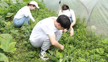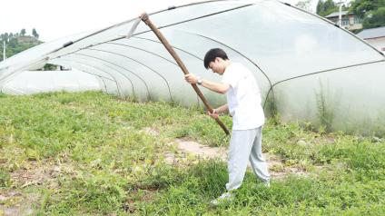 1. 迎着朝阳,团队来到少云村帮助当地农户除杂草。为了保证瓜果蔬菜的绿色有机,村民很少使用化肥农药,就这样面朝黄土背朝天地铲除“春风吹又生”的杂草,就是这样一代又一代勤劳朴实的劳动人民构建起了农业大国的坚实根基。此行的躬身实践、所见所闻和师长教导都让我受益匪浅,我定当在今后的学习和生活中进一步践行初心和使命。