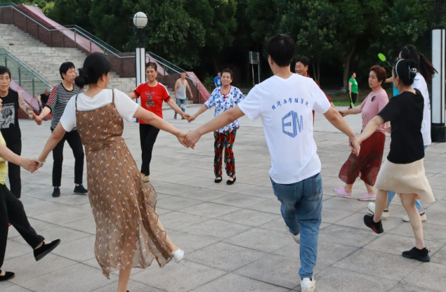 7月15日,“探振兴之路,筑复兴之梦”乡村振兴促进团赴綦江区永城镇中华村永丰广场与村民一起齐跳“坝坝舞”。傍晚时分,日影斜沉。促进团成员们融入村民舞队中,跟随动感音乐节拍,尽情跃动、大展身手,欢快的音乐声、热情的呐喊声回荡在夏日空气中。成员们神采奕奕,有教有学,热情高涨,将大学生特有的青春活力融入舞步中,引起村民一致好评。以“坝坝舞”为载体,走进群众,与村民共舞,营造出崇尚健康、参与健身的良好氛围。