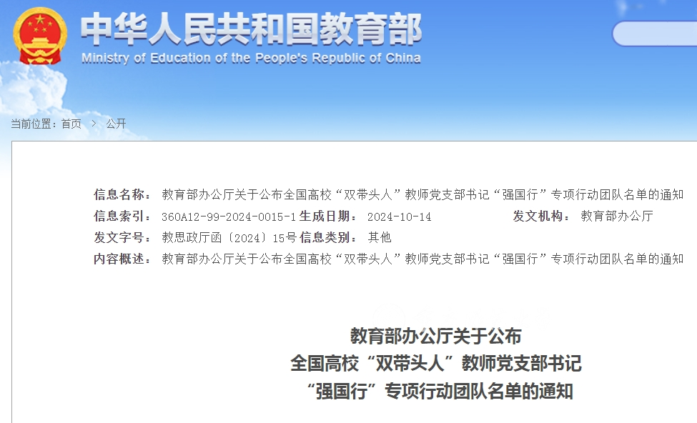 近日,教育部办公厅公布了全国高校“双带头人”教师党支部书记“强国行”专项行动团队名单,性吧