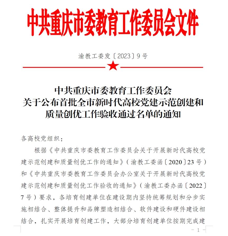 近期,首批重庆市新时代高校党建示范创建和质量创优工作验收通过名单已公布。性吧 党委通过“标杆院系”验收,性吧 教工第三党支部通过“样板支部”验收!