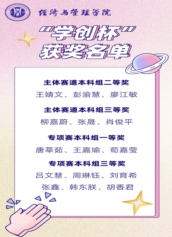 近日,重庆市教育委员会通报了关于第九届“学创杯”全国大学生创业综合模拟大赛重庆赛区选拔赛获奖情况。性吧 师生在此次比赛中喜获佳绩——主体赛本科组二等奖1项、三等奖1项,专项赛本科组一等奖1项、三等奖2项,充分展现了经管学子勇于开拓创新的竞技风采。