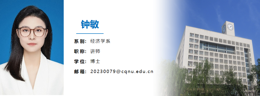 钟敏,女,经济学博士,讲师。主要研究方向:生产网络、经济韧性、数字经济、ESG等。主讲课程:《数字经济概论》、《应用数理统计》、《管理学》等。